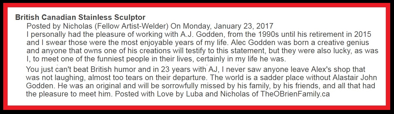 AJ's Interview with Clark Hoskin "My warmest regards to my sister "Miriam" love Alastair" At the age of 83 The Sea Sculpture of Port Dover |